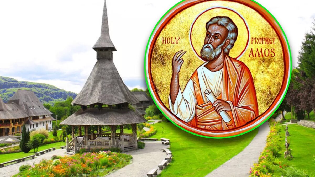 Sfântul Proroc Amos, originar din satul Tecoa de lângă Betleem, a trăit în secolul al VIII-lea î.Hr. și este recunoscut pentru rolul său în promovarea credinței monoteiste în Israel și Iudeea. Amos a fost păstor la porci și a început să proorocească în timpul domniei împăratului Ozia al Iudeei și a împăratului Ieroboam al Israelului, confruntând autoritățile religioase și politice pentru închinarea la idoli și pentru abaterile morale ale poporului.